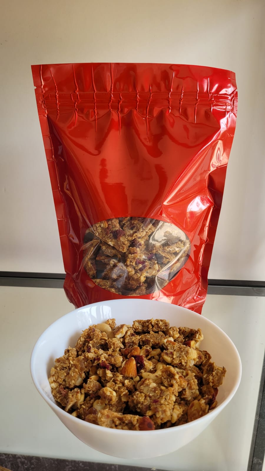 Add milk / curd to your breakfast bowl and add hanful of granolas. No need to add any sweetner as it already has jaggery in it.